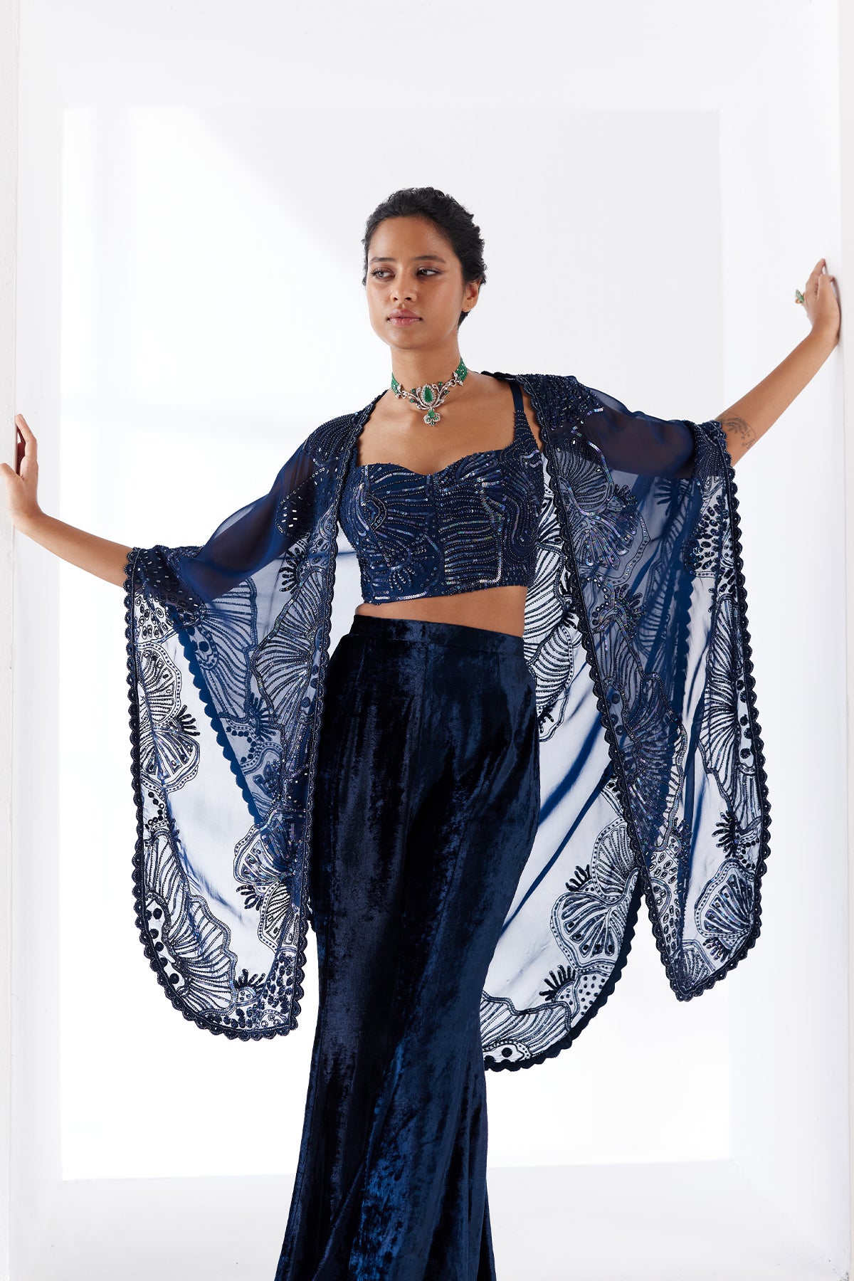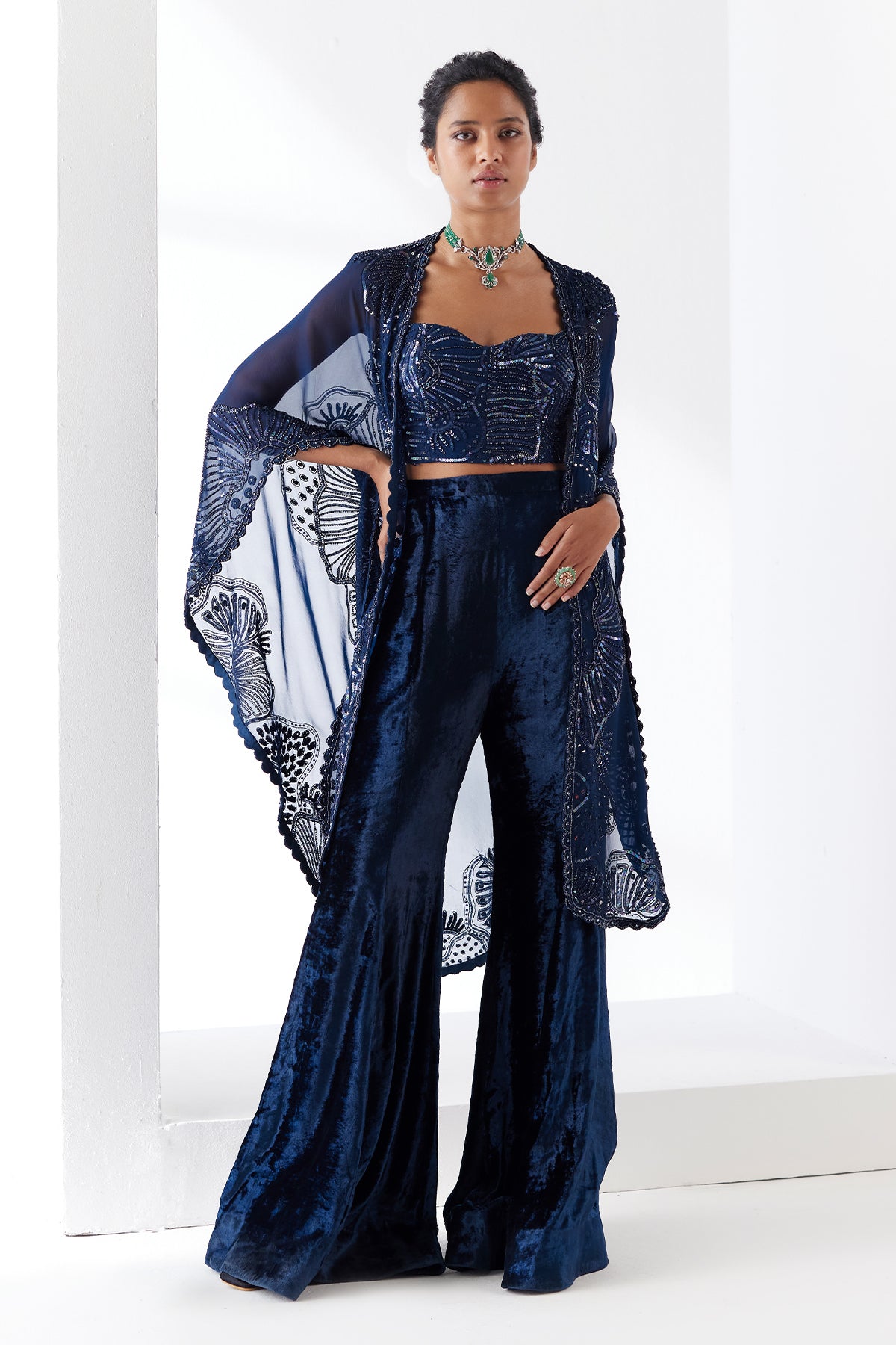 Sea coral triangle cape set with velvet pants