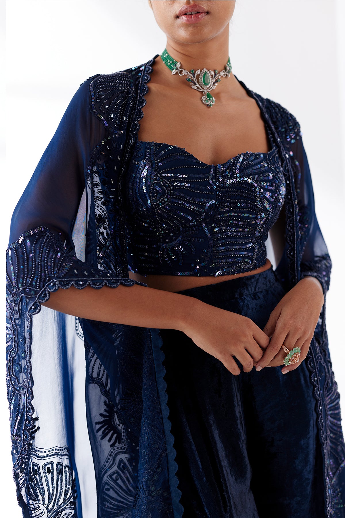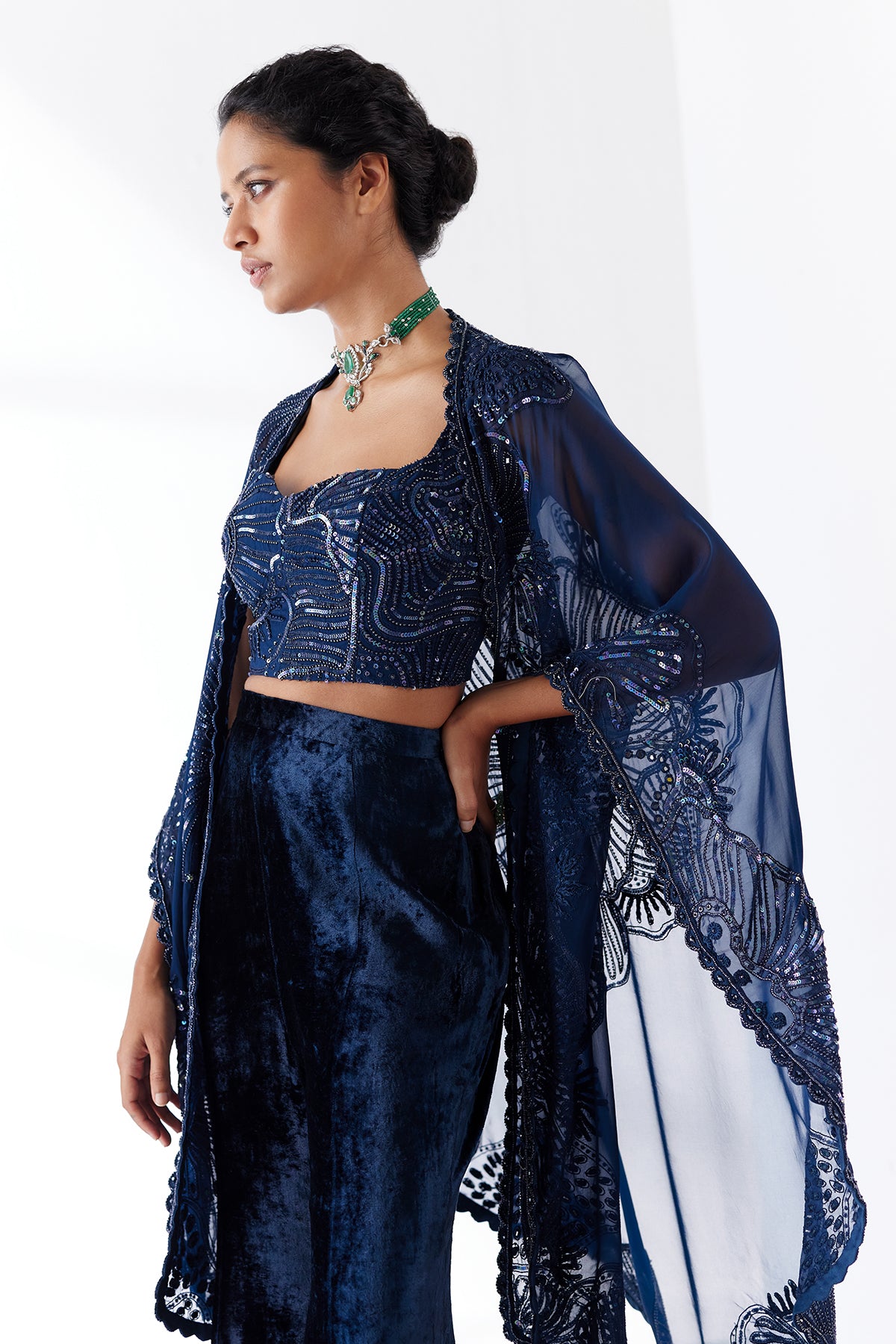 - Material/Fabric - Cape- organza, pants - velvet, bustier - tulle