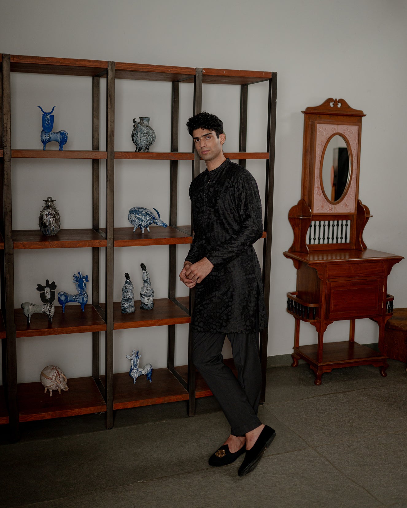 FLAT HEXAGON EMBROIDERED KURTA AND PLAIN PANT