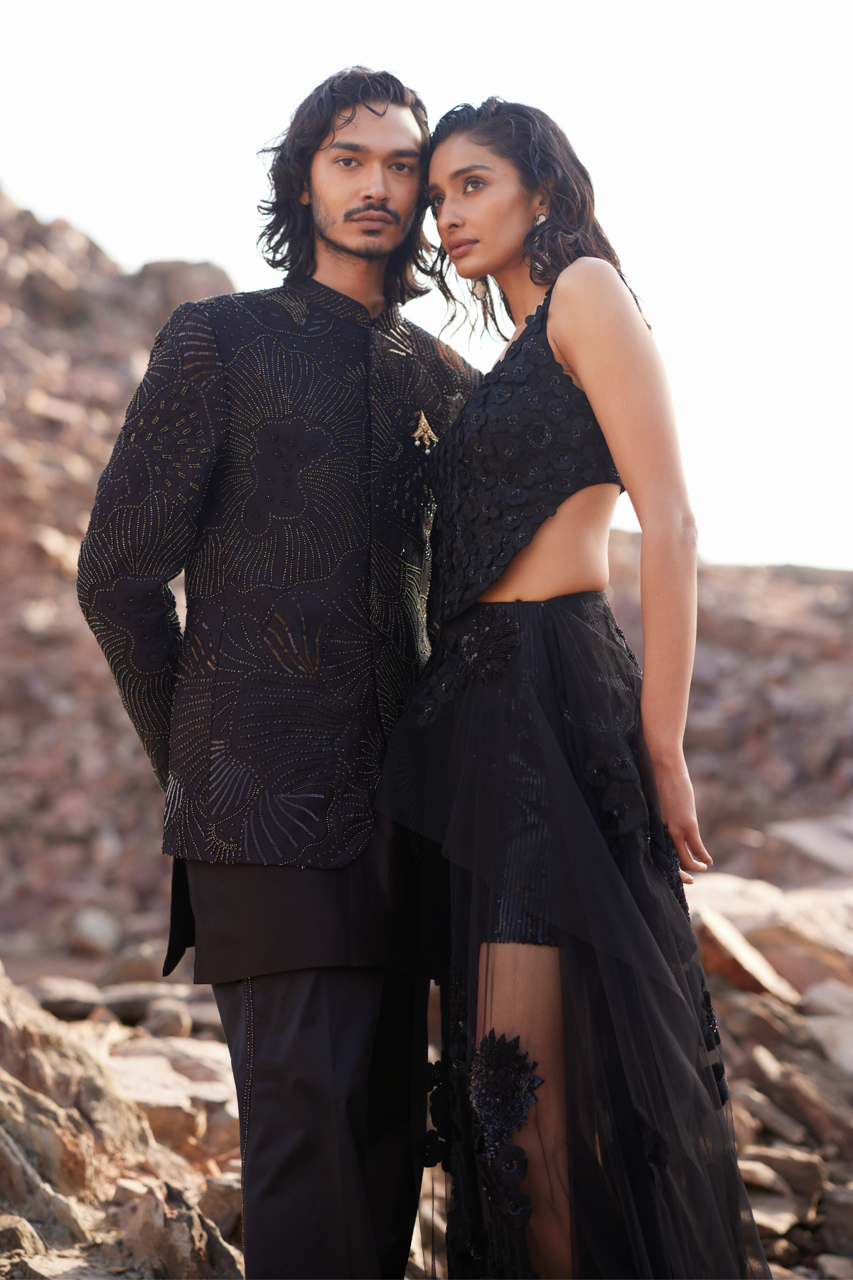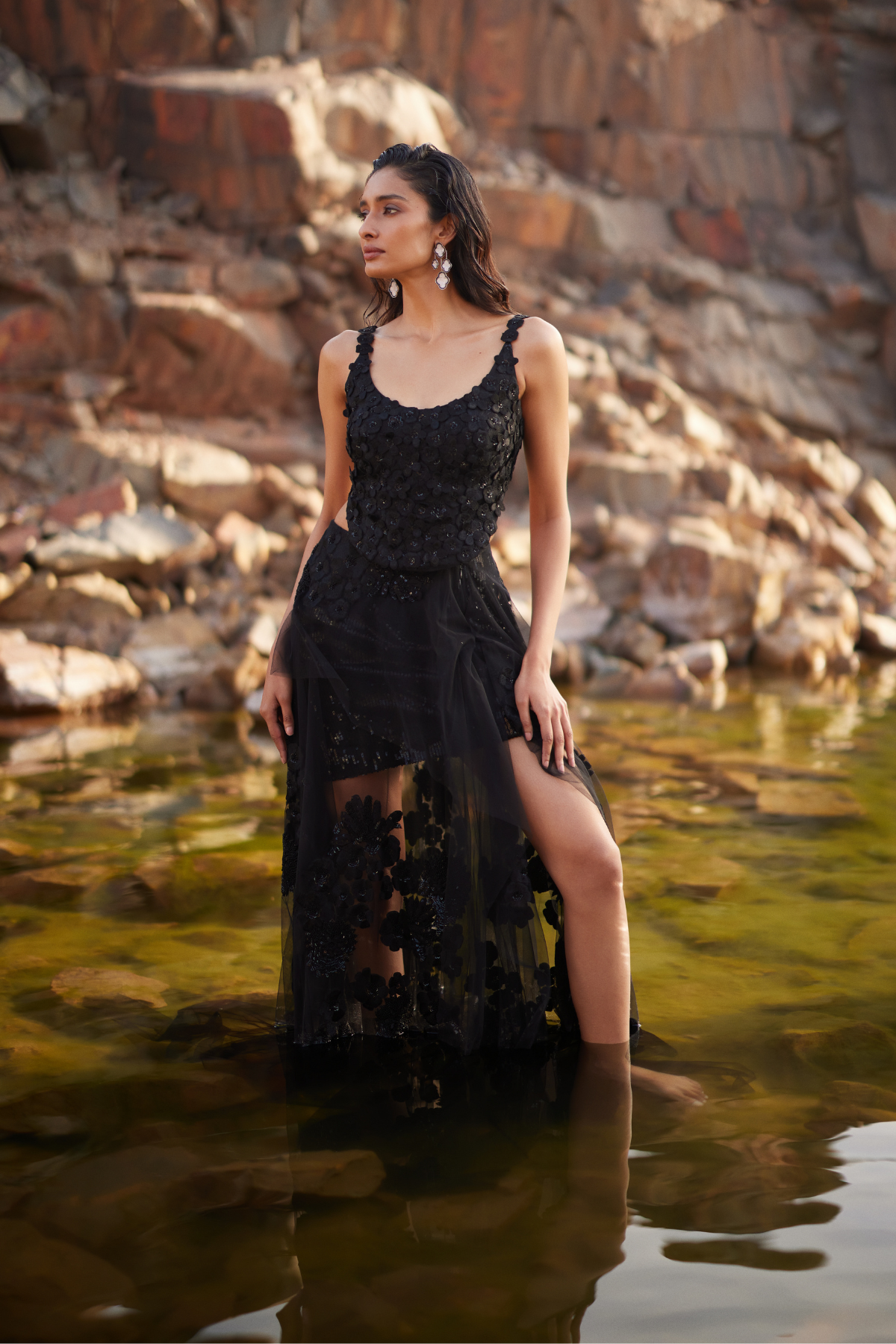 Floral Bunches overlay skirt with 3D embroidered croptop
