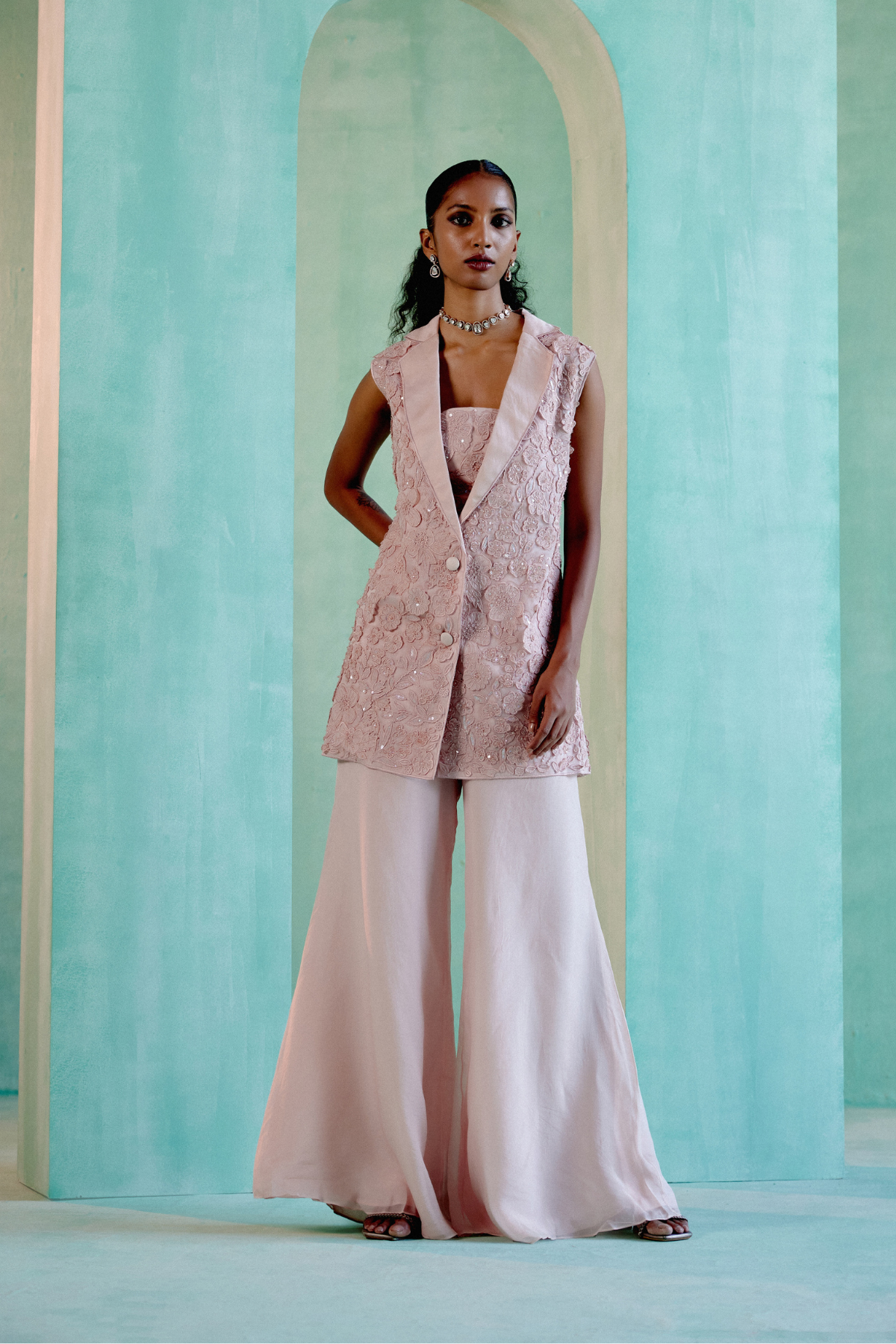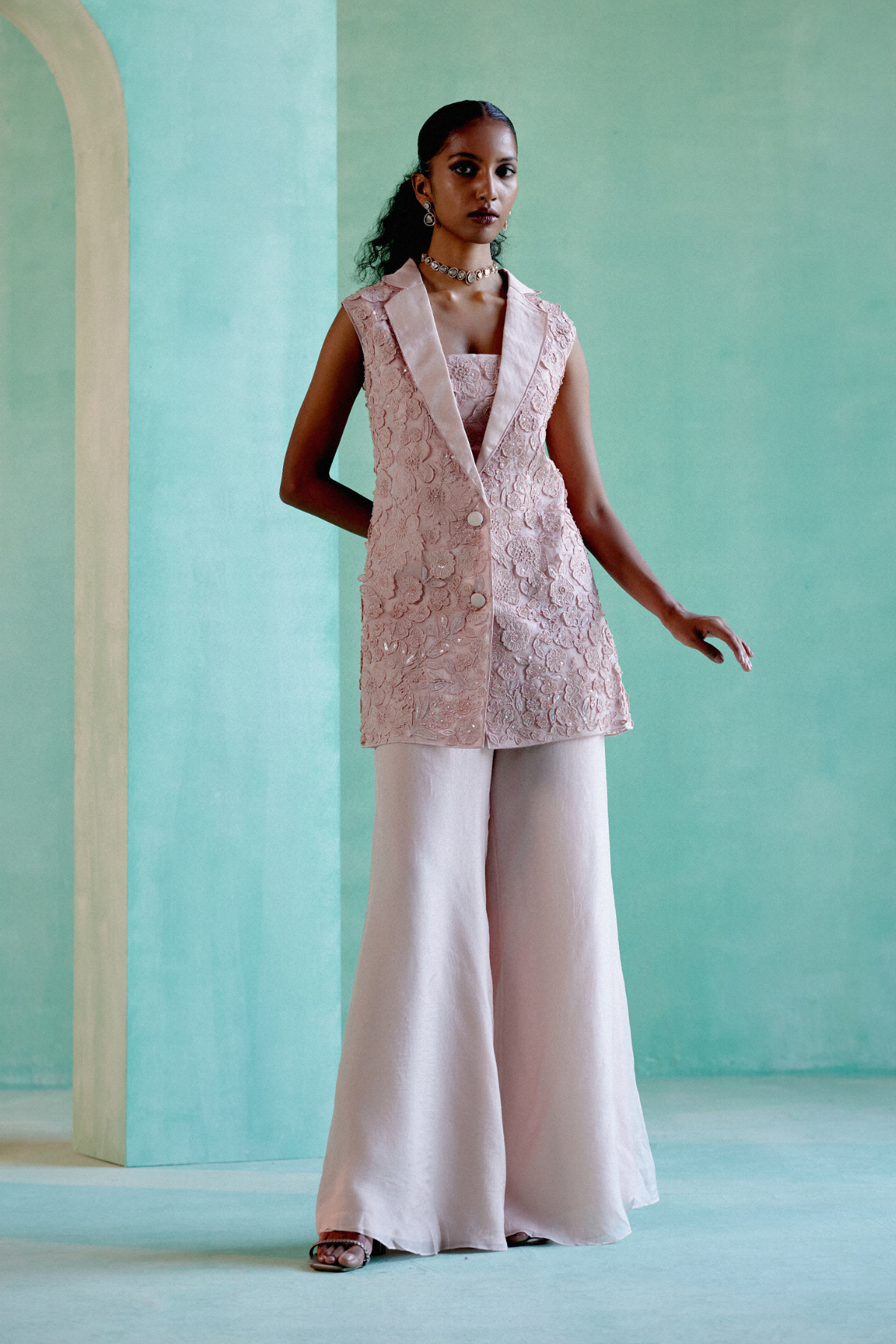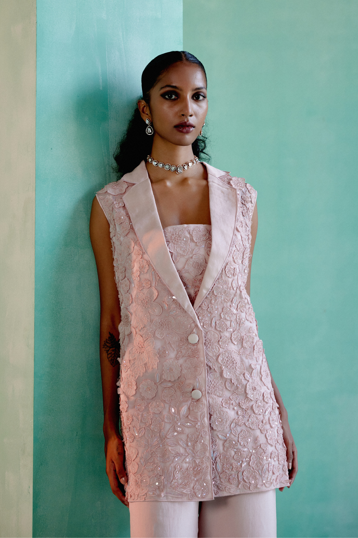Dense 3D floral embroidered Blazer, crop top and Pants
