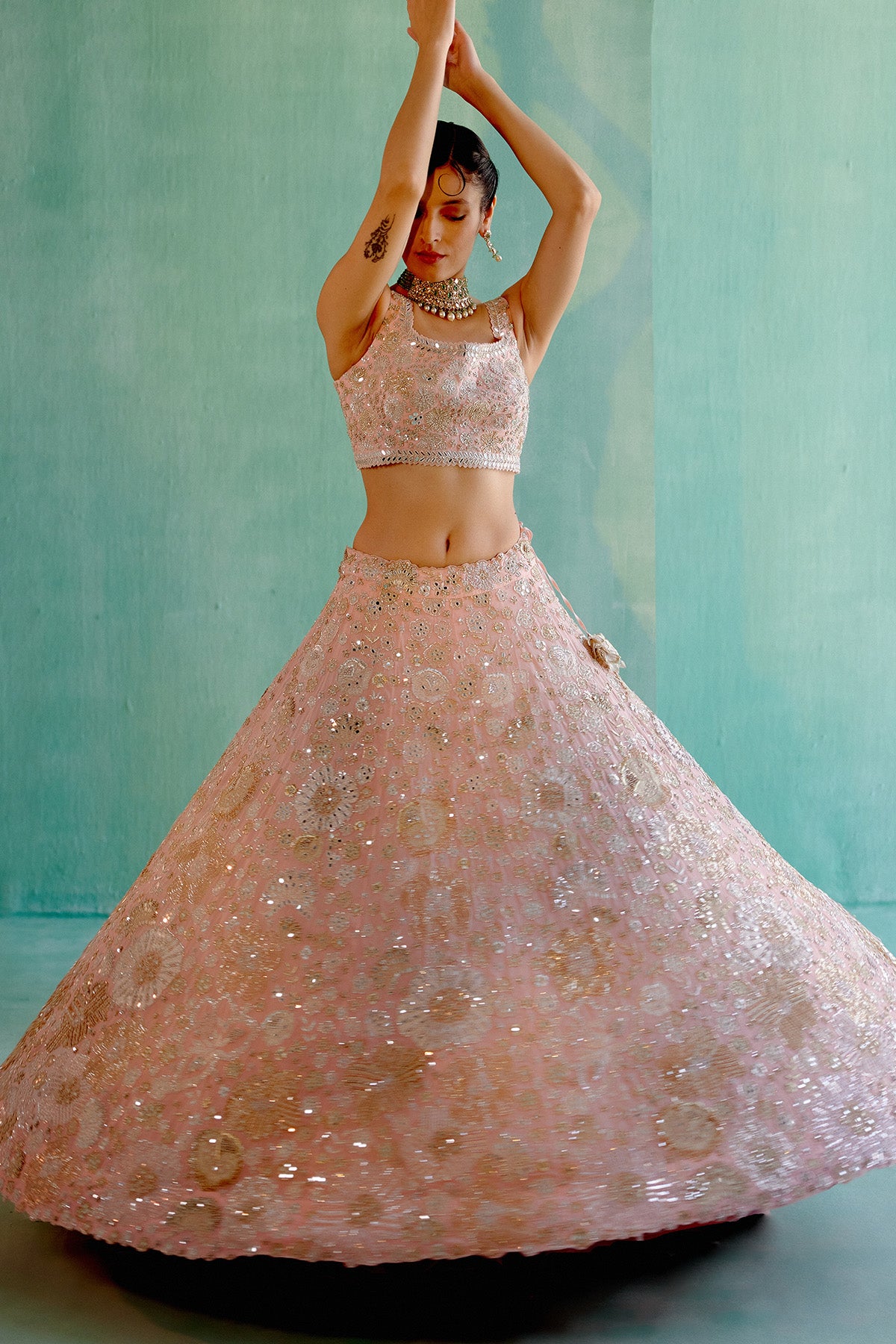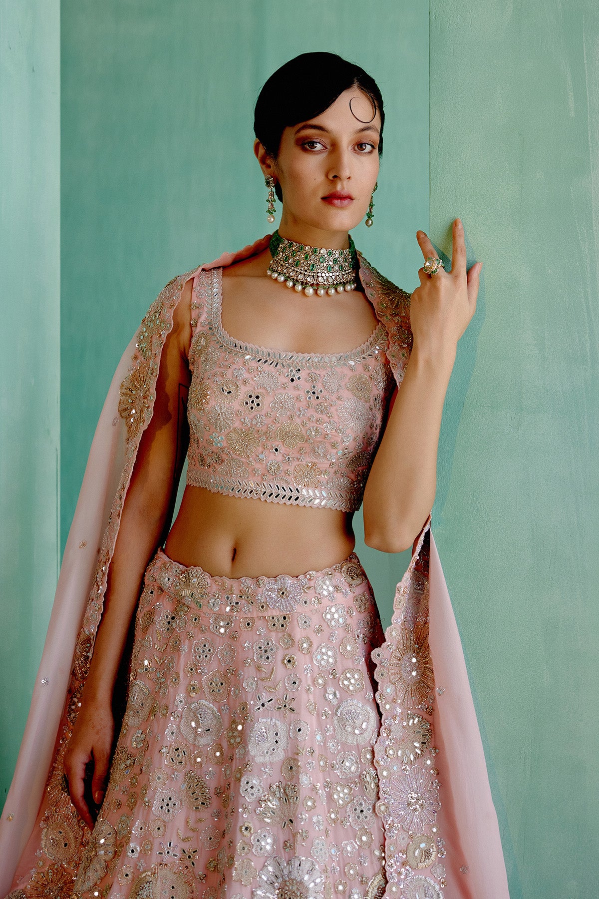 - Precious flowers embroidered lehenga set