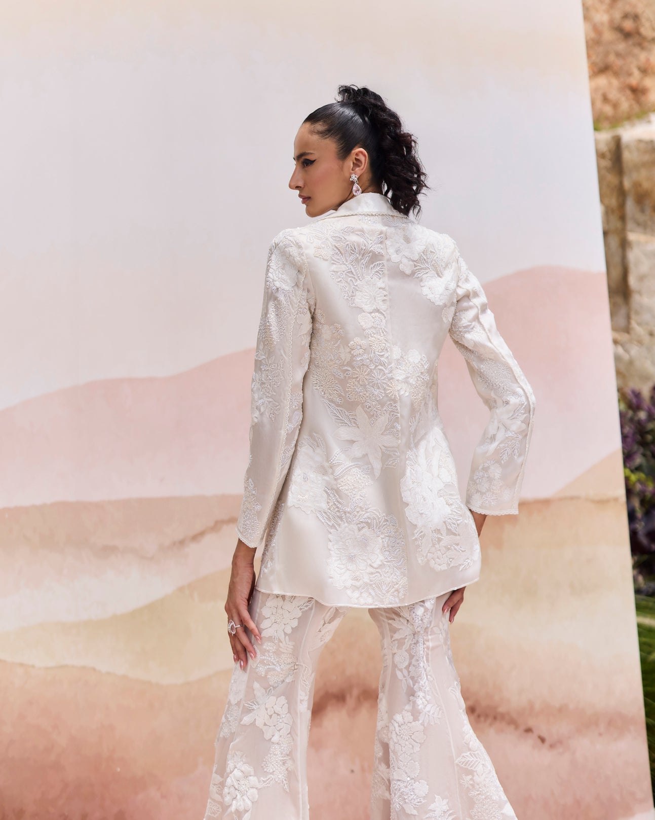 VELVET FLORAL CLUSTERS APPLIQUE EMBROIDERED BLAZER SET