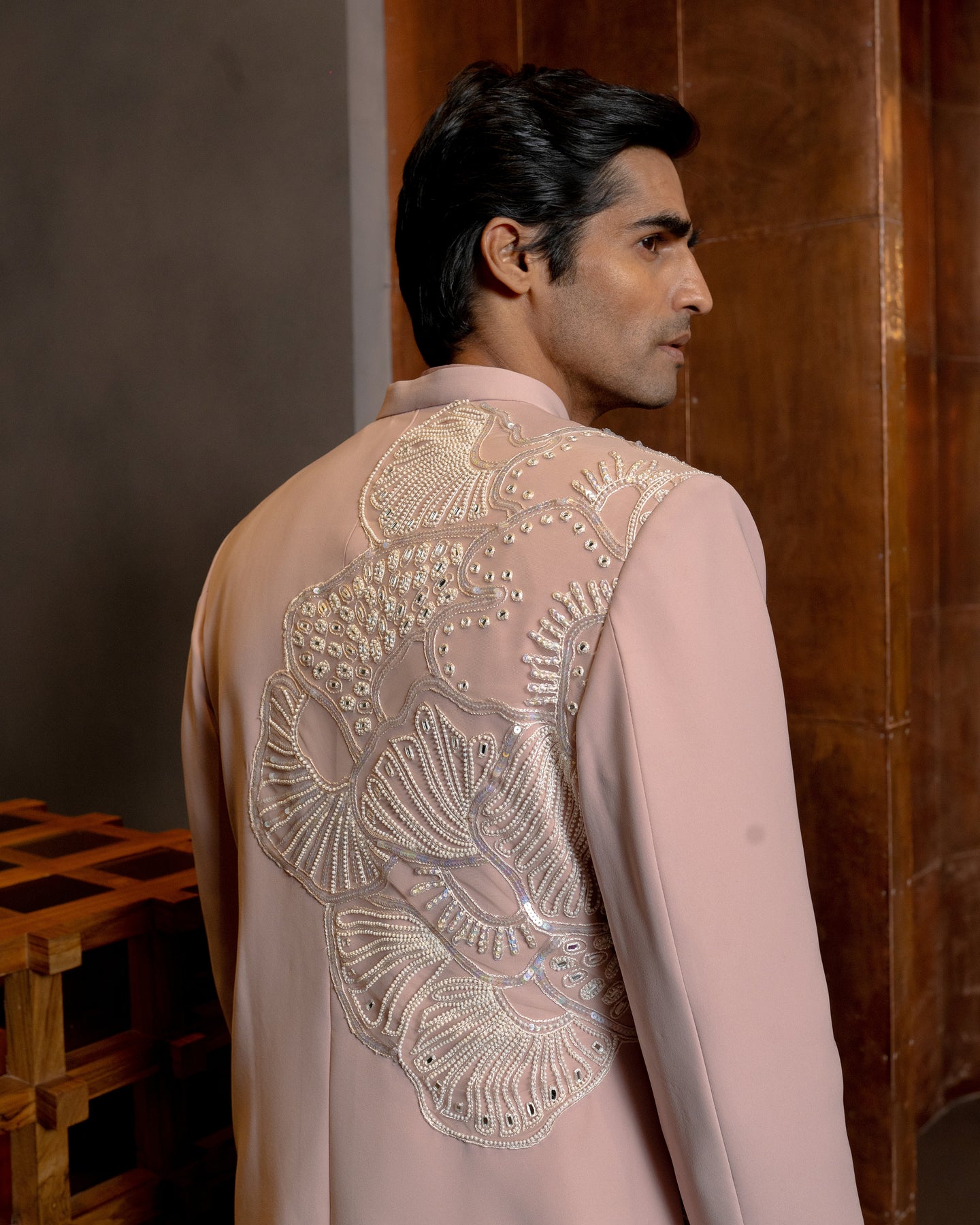 Sea coral embroidered Bandhgala with Plain Shirt and Parallel Pants