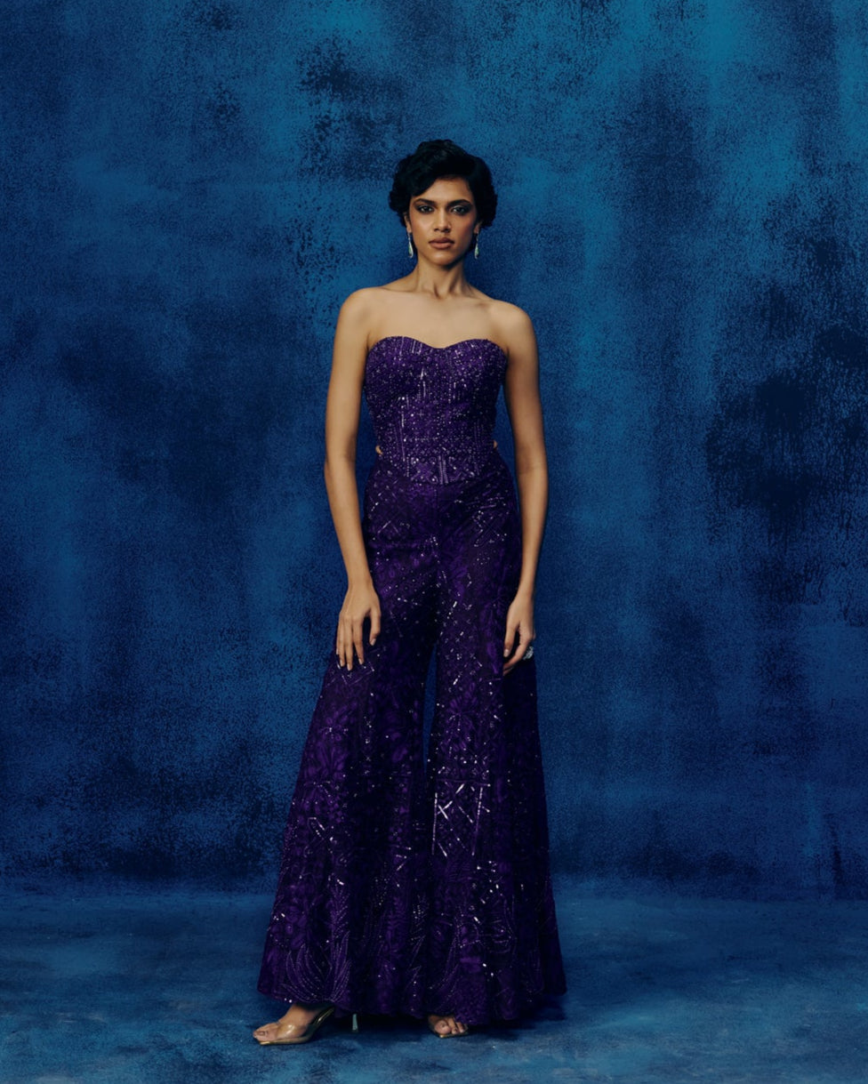 TONAL GEOMETRIC WITH LEAVES BUNCH PLACEMENT AMAYA PANTS WITH GEOMETRIC CORSET AND DUPATTA