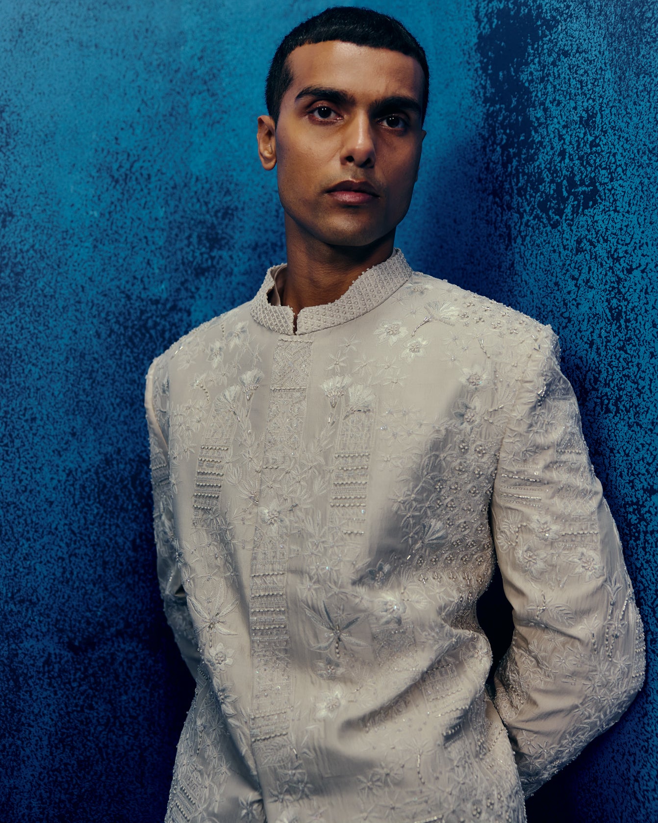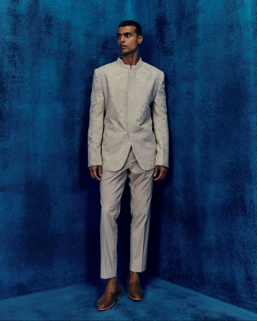 TONAL WILDFLOWERS EMBROIDERY WITH GEOMETRIC PATTERN PLACEMENT JODHPURI SET