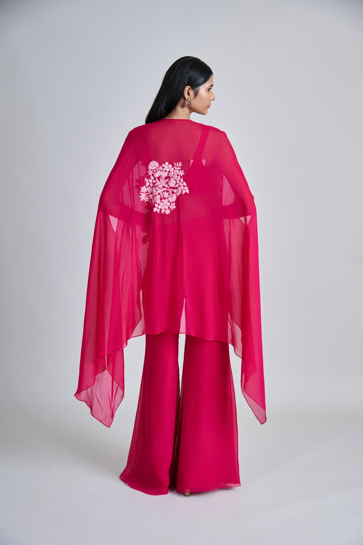 CONTRAST ASSORTED LEAVES AND WILDFLOWER BORDER CAPE WITH WILDFLOWER BUSTIER AND PANTS