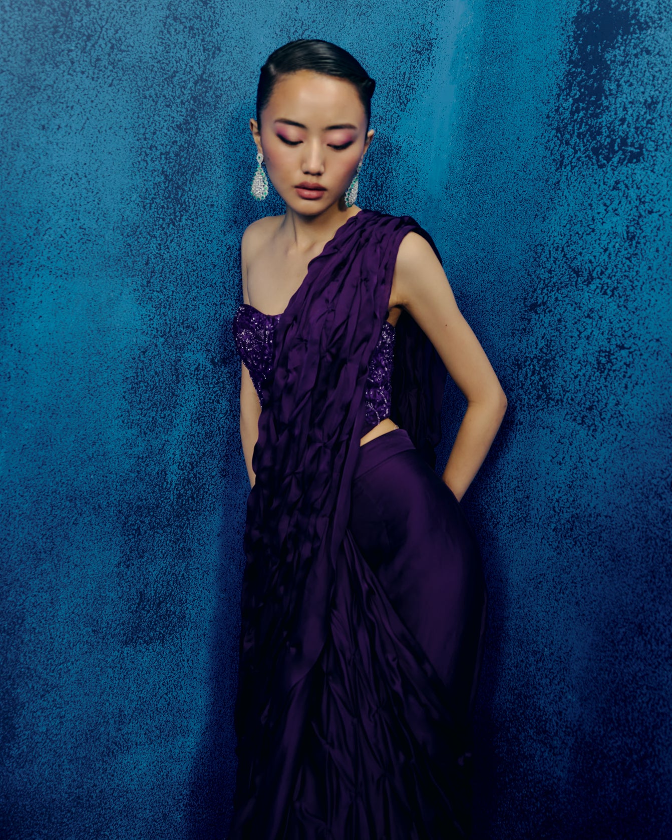 TONAL WILDFLOWER EMBROIDERED CORSET WITH SMOCKED SAREE