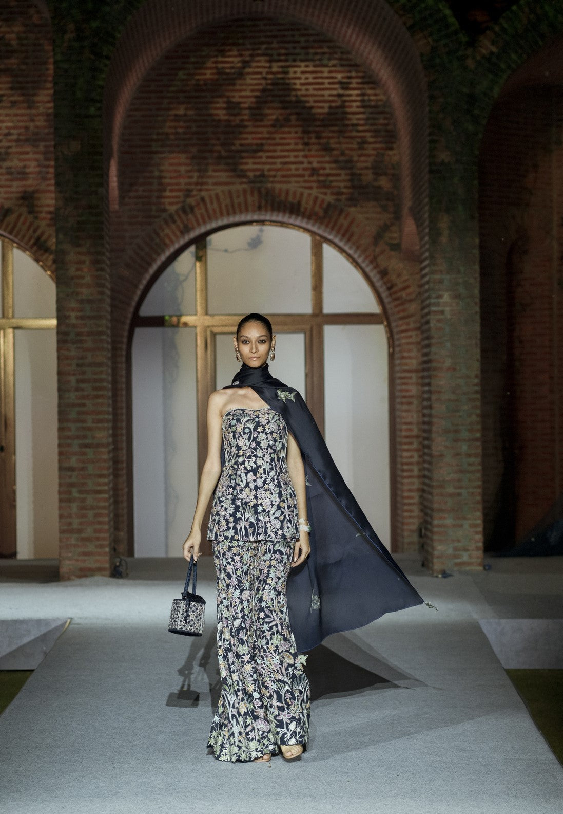 MULTICOLOR WILDFLOWER OFF-SHOULDER TOP PAIRED WITH PANTS COORD SET AND A STOLE