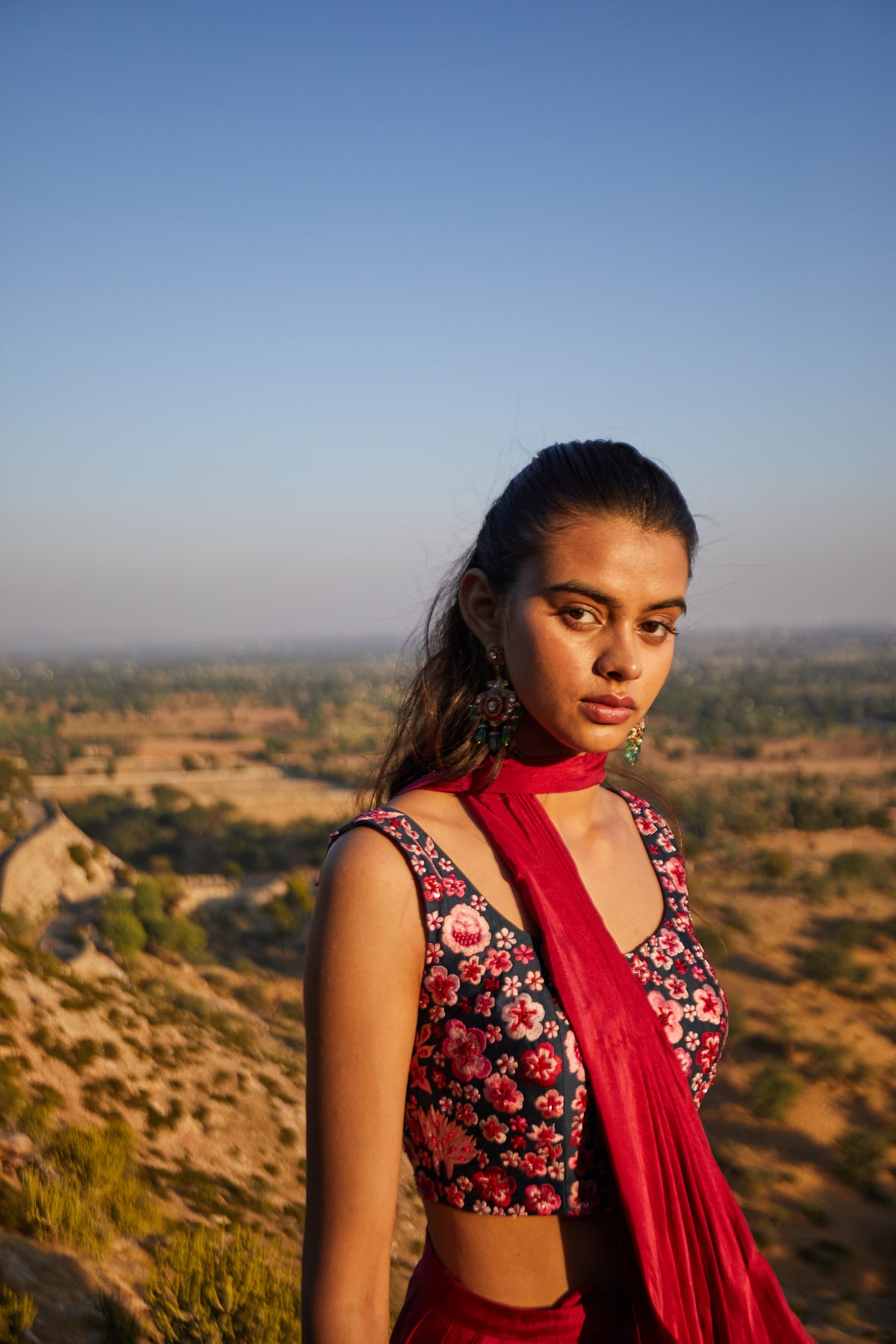 Joggers Set With A Drape Paired With A Floral Crop Top And Belt