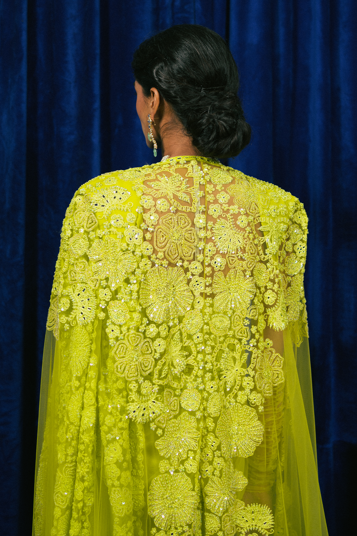 Precious flowers saree paired with a corset and cape