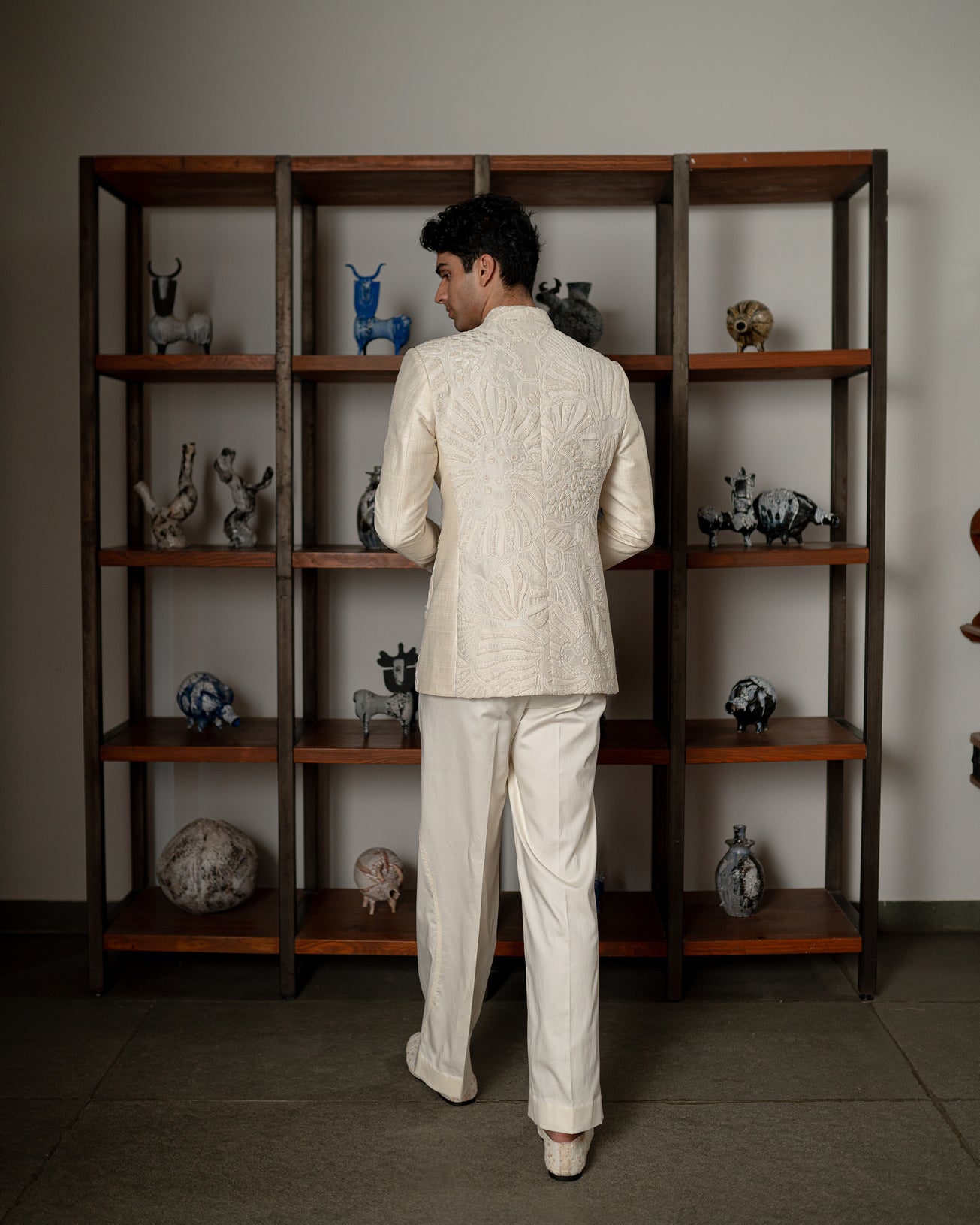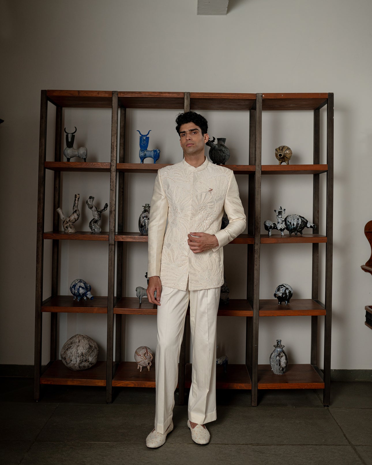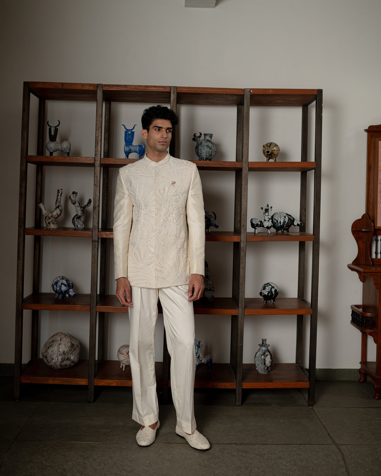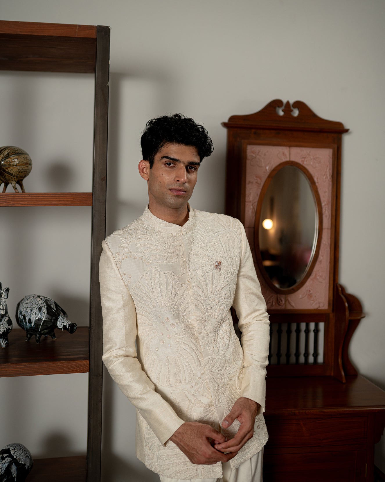 SEA CORAL TEXTURED JODHPURI WITH PANT.